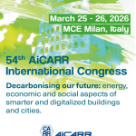 The 54th AiCARR International Conference “Decarbonising our future: energy, economic and social aspects of smarter and digitilized buildings and cities” will be held on March 25th and 26th 2026, at Mostra Convegno Expocomfort, Fieramilano-Rho, in Milan, Italy.